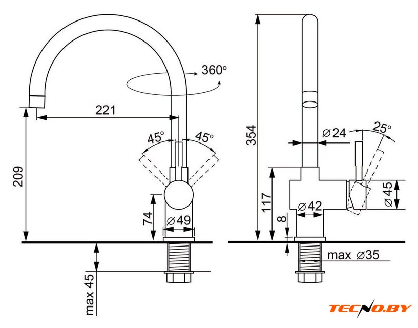 однорычажный смеситель для кухни, монтаж на раковину или столешницу