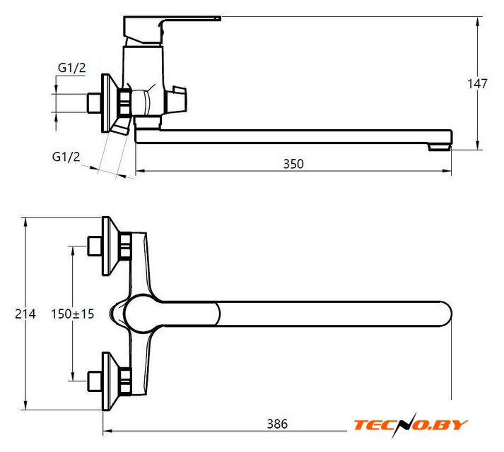 однорычажный смеситель для ванны и душа, монтаж на стену