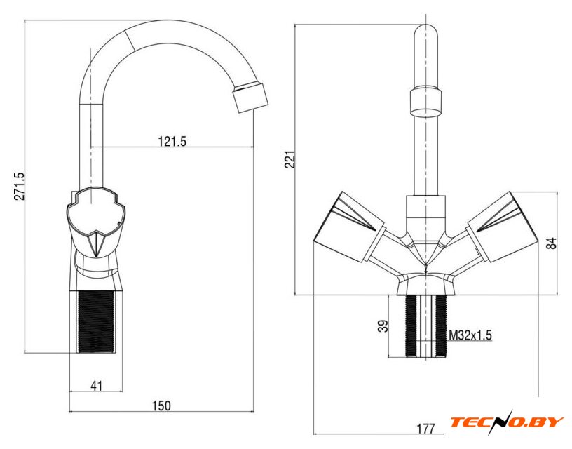 | Длина (вылет) излива | 121.5 — 121.5 мм |