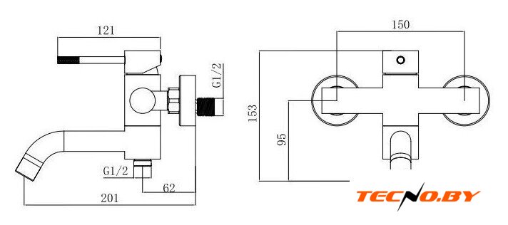 однорычажный смеситель для ванны и душа, монтаж на стену