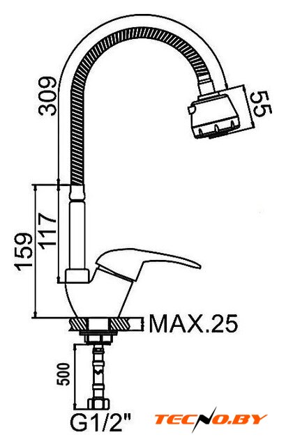 однорычажный смеситель для кухни, монтаж на раковину или столешницу