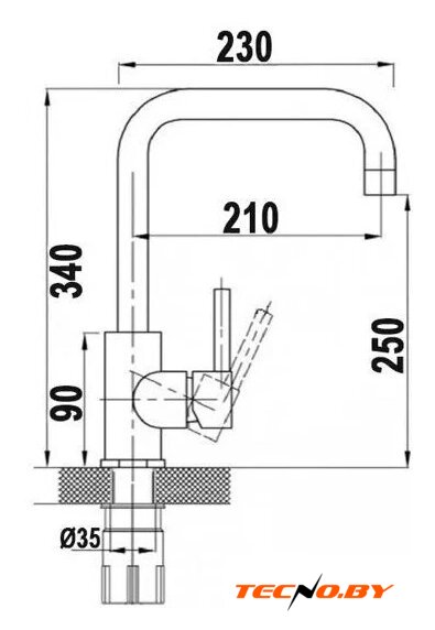 однорычажный смеситель для кухни, монтаж на раковину или столешницу