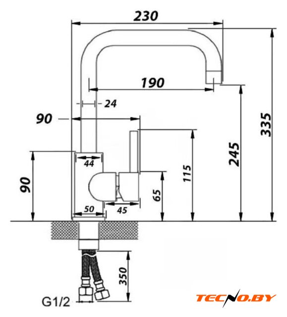 однорычажный смеситель для кухни, монтаж на раковину или столешницу