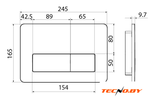 для унитаза, управление механическое, смыв двойной, скрытый монтаж, 245x165 мм, цвет: черный