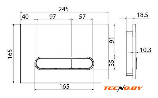 для унитаза, управление механическое, смыв двойной, скрытый монтаж, 245x165 мм, цвет: черный