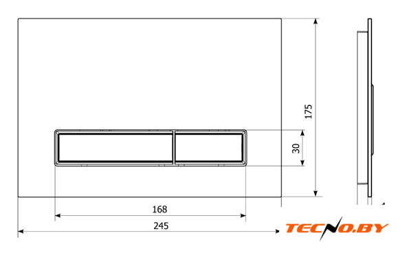 для унитаза, управление механическое, смыв двойной, скрытый монтаж, 245x175 мм, цвет: белый