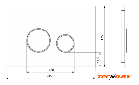 для унитаза, управление механическое, смыв двойной, скрытый монтаж, 245x175 мм, цвет: черный