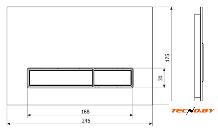 для унитаза, управление механическое, смыв двойной, скрытый монтаж, 245x175 мм, цвет: черный