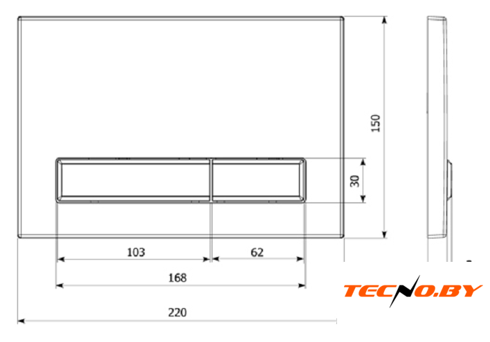 для унитаза, управление механическое, смыв двойной, скрытый монтаж, 220x150 мм, цвет: черный