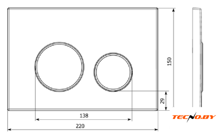 для унитаза, управление механическое, смыв двойной, скрытый монтаж, 220x150 мм, цвет: белый/черный