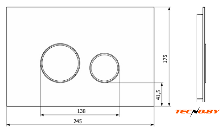 для унитаза, управление механическое, смыв двойной, скрытый монтаж, 245x175 мм, цвет: черный