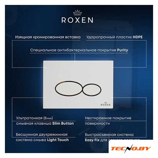 для унитаза, управление механическое, смыв двойной, скрытый монтаж, 246x165 мм, цвет: белый