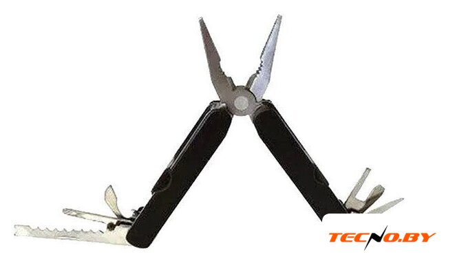 складной нож, длина: 62 мм, сталь: 420C, рукоять: металл, черный цвет, 15 инструментов