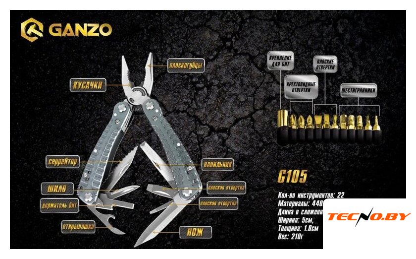 мультитул, длина: 40 мм, рукоять: алюминий, зеленый цвет, 5 инструментов, с фиксатором