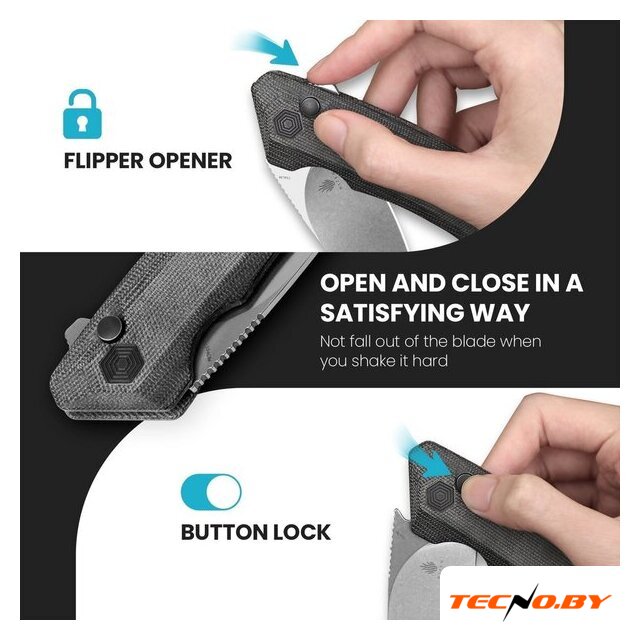 складной нож, длина: 88 мм, сталь: D2, рукоять: композит (G10), черный цвет, с фиксатором