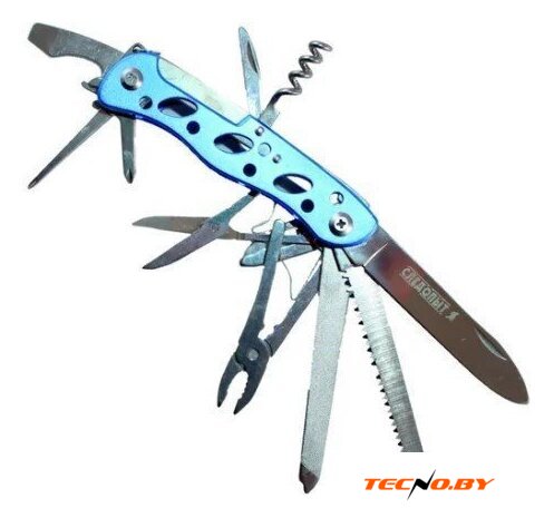 мультитул, рукоять: металл, бирюзовый/нержавеющая сталь цвет, 15 инструментов