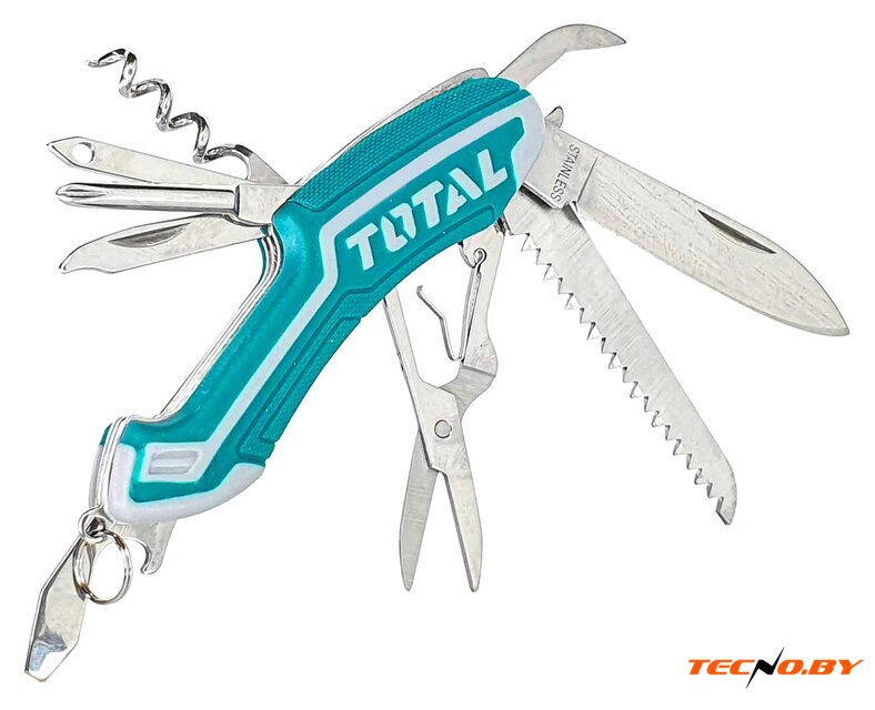 складной нож, рукоять: пластик, голубой цвет, 11 инструментов