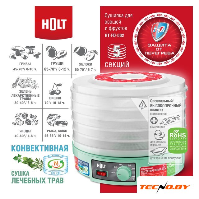 240 Вт, 5 подносов, электронное управление, нижний нагревательный элемент
