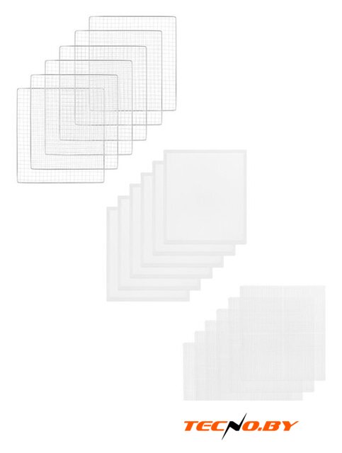 | Комплектация | - 6 поддонов для сушки;- 6 поддонов для жидкости;- 6 сеток для трав, ягод и т.д. |