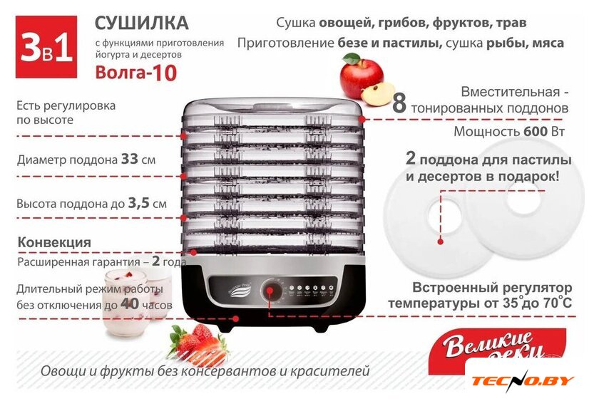 600 Вт, 8 подносов, механическое управление, нижний нагревательный элемент