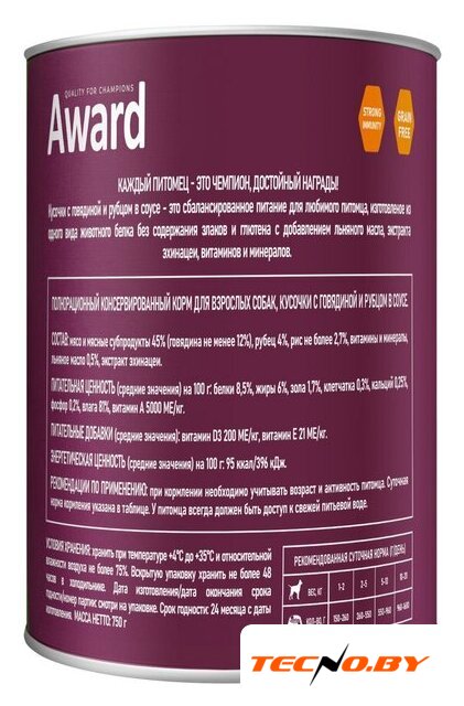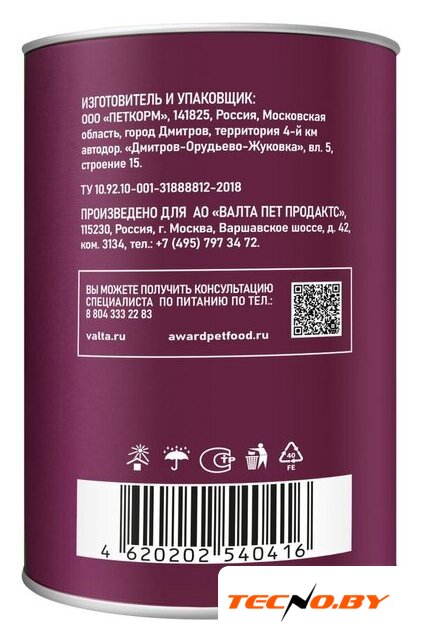 | Тип корма | консервированный |