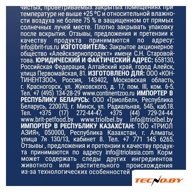 | Ингредиенты | дегидрированная курица 38%; кукуруза; куриный жир; клетчатка свекловичная; гидролизированная куриная печень 3%; рис 2%; дрожжи пивные; витаминно-минеральный комплекс; семя льняное; хлористый калий; метионин; лизин; оксид магния; рыбий жир; соль поваренная; таурин; высушенные клеточные стенки дрожжевой культуры; юкка Шидигера; хондропротекторы (глюкозамин и хондроитин); L-карнитин; натуральные антиоксиданты (смесь токоферолов) |