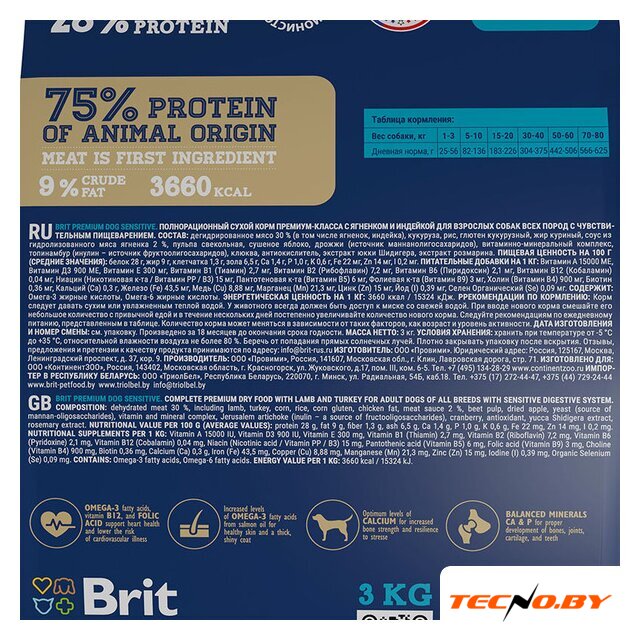 | Ингредиенты | Дегидрированное мясо 30% (в том числе ягненок, индейка), кукуруза, рис, глютен кукурузный, жир куриный, соус из гидролизованного мяса ягненка 2 %, пульпа свекольная, сушеное яблоко, дрожжи (источник маннанолигосахаридов), витаминно-минеральный комплекс, топинамбур (инулин - источник фруктоолигосахаридов), клюква, антиокслитель, экстракт юкки Шидигера, экстракт розмарина. |