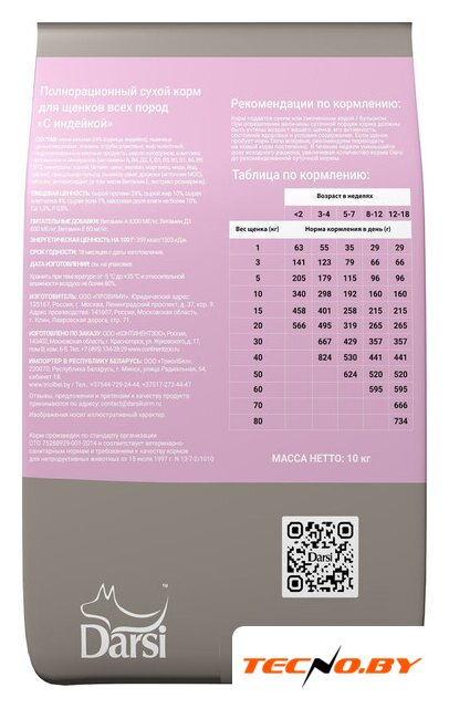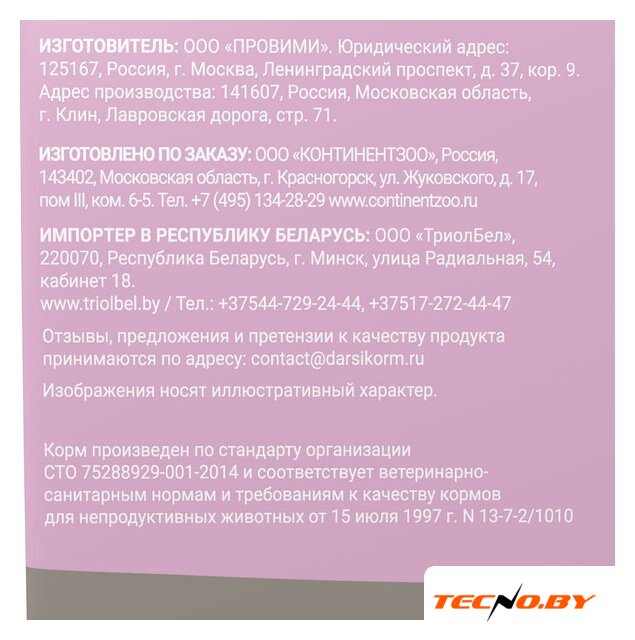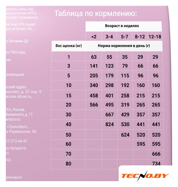 | Питательные вещества | Аналитический состав: Сырой протеин 24%, сырой жир 10%, сырая клетчатка 4%, сырая зола 7%, массовая доля влаги не более 10%, Са — 1.3%, Р — 0.8%.Добавки: Витамин А 6300 МЕ/кг, Витами Д3 600 МЕ/кг, Витамин Е 60 мг/кг. Энергетическая ценность на 100 Г: 359 ккал / 1503 кДж.Энергетическая ценность: 359 ккал / 1503 кДж. |