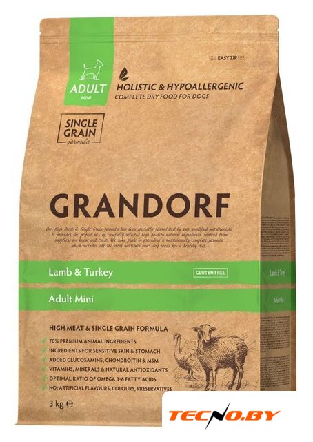 сухой корм, для взрослых, порода: мини (до 10 кг), беззерновой, пакет
