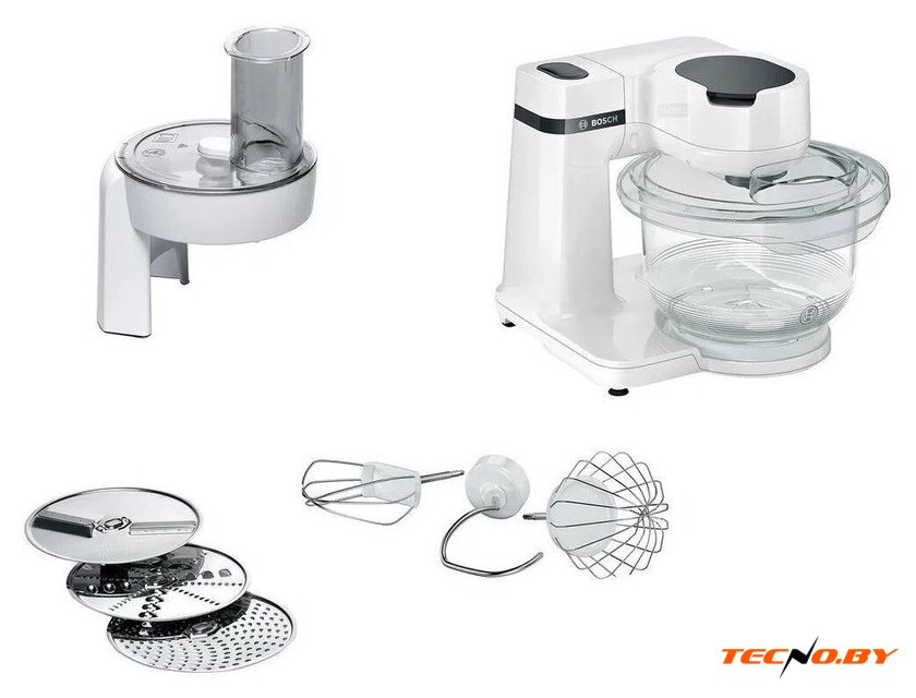 | Функции | взбивание, смешивание, замешивание дрожжевого теста, терка, шинковка, ломтерезка |