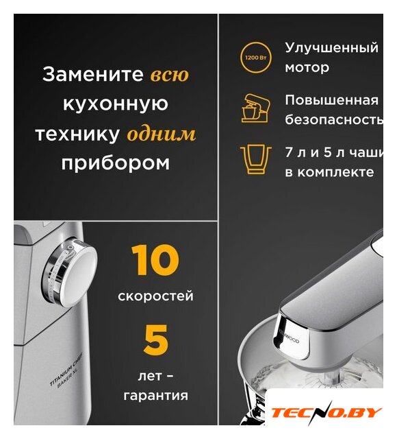 1200 Вт, планетарное смешивание, объем чаши: 5 л