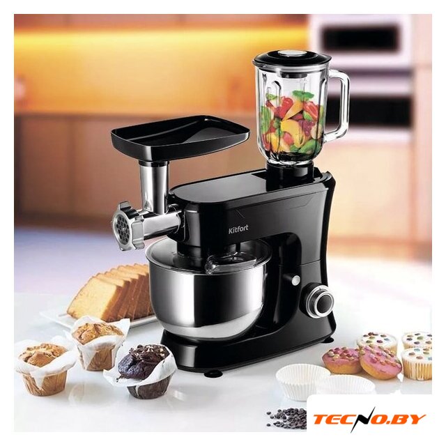 1000 Вт, планетарное смешивание, объем чаши: 4.8 л, мясорубка, блендер