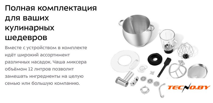 2000 Вт, планетарное смешивание, объем чаши: 7 л, терки, мясорубка, блендер
