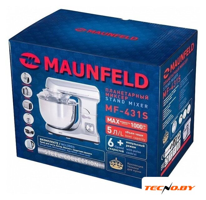 1000 Вт, планетарное смешивание, объем чаши: 6 л, мясорубка, блендер
