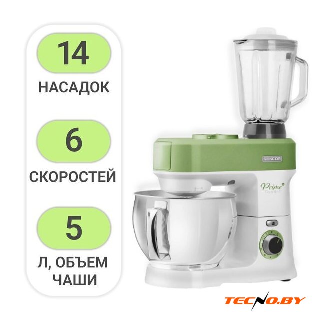 1200 Вт, планетарное смешивание, объем чаши: 5.5 л, мясорубка, блендер