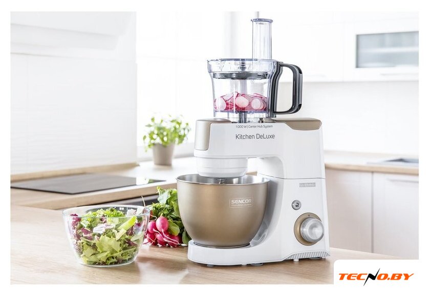 1000 Вт, планетарное смешивание, объем чаши: 4.3 л, терки, мясорубка, блендер