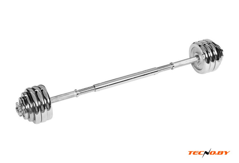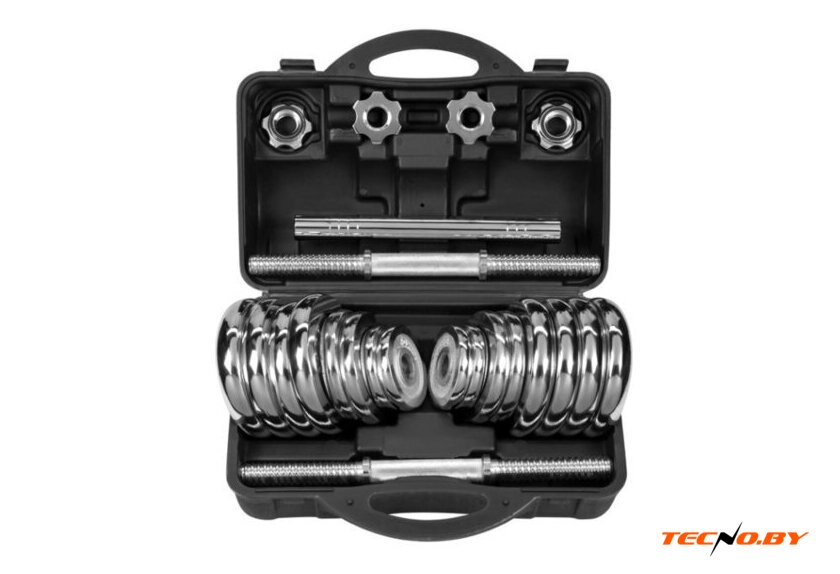 набор гантелей с грифом для штанги, 2 шт., вес снаряда 22.5 кг, конструкция: разборная, посадочный 25 мм, длина 34 см