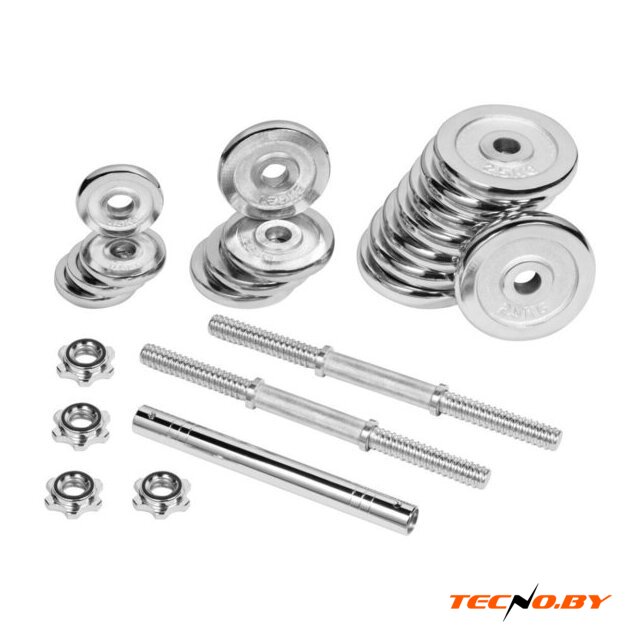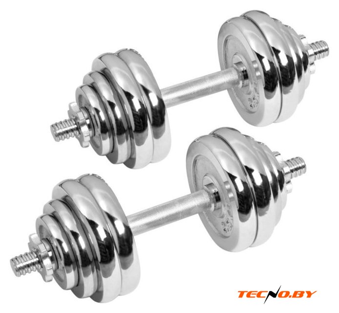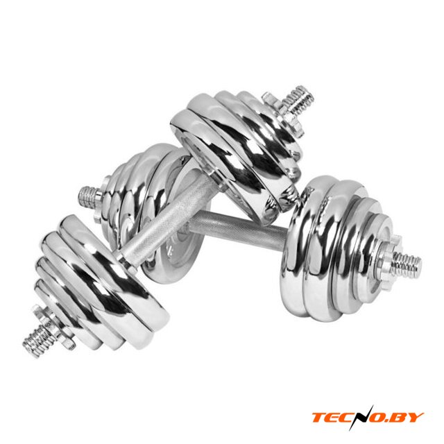 набор гантелей с соединительным грифом, 2 шт., вес снаряда 7.5 кг, конструкция: разборная, посадочный 25 мм, длина 34 см