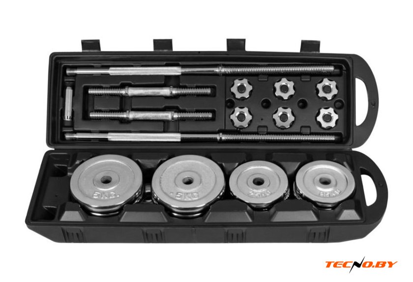 набор гантелей с соединительным грифом, 2 шт., вес снаряда 10 кг, конструкция: разборная, посадочный 25 мм, длина 34 см