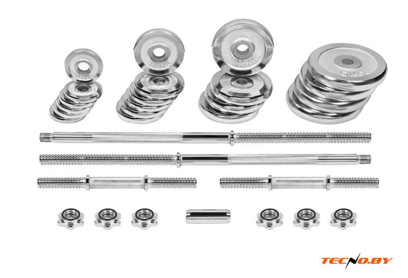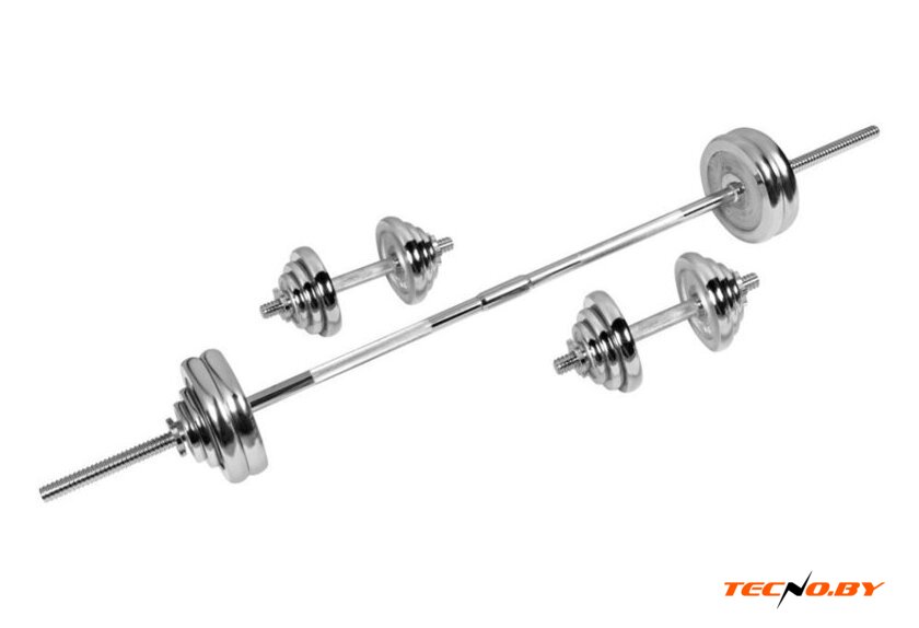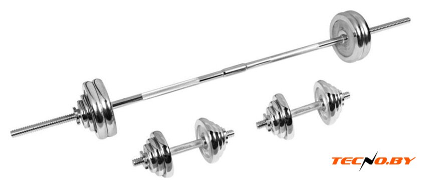 набор гантелей с грифом для штанги, вес снаряда 50 кг, конструкция: разборная, посадочный 25 мм, длина 150 см