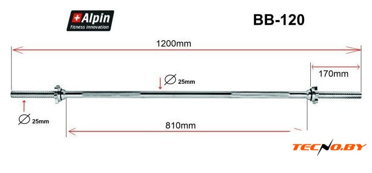 гриф для штанги, 1 шт., конструкция: цельная, посадочный 25 мм, длина 120 см