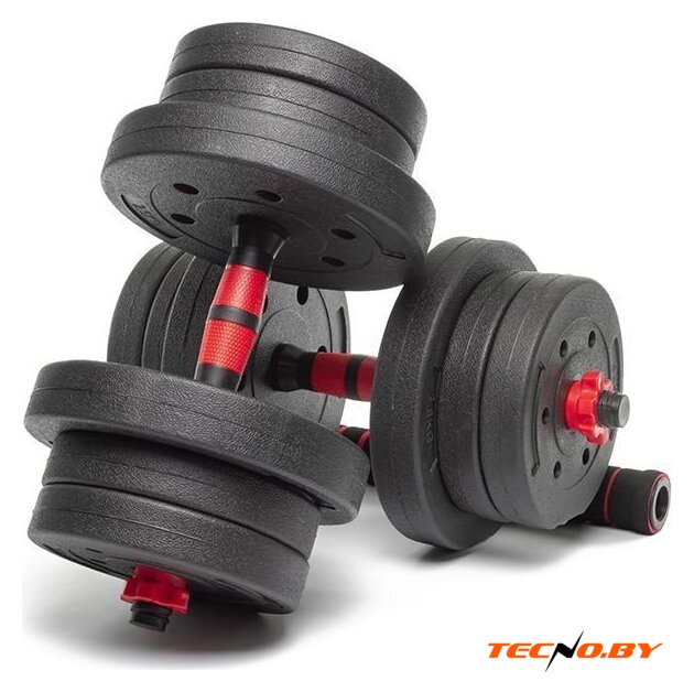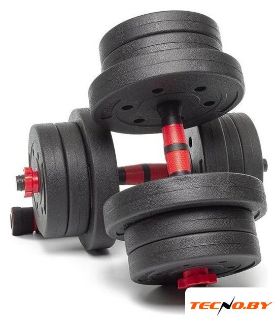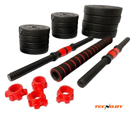 | Комплектация | - 2 гантельных грифа 44 см с гайками - диски 1.25 кг – 8 шт (диаметр 18 см, толщина 3 см), - диски 2.5 кг – 4 шт (диаметр 19.5 см, толщина 3 см), - соединительный гриф 40 см для превращения гантелей в штангу (прямой соединительный коннектор). |