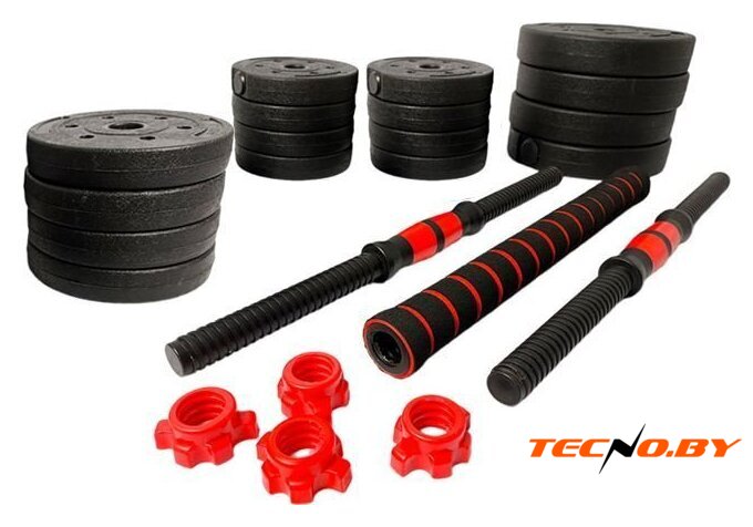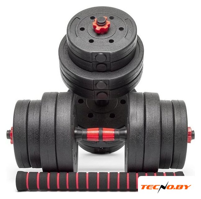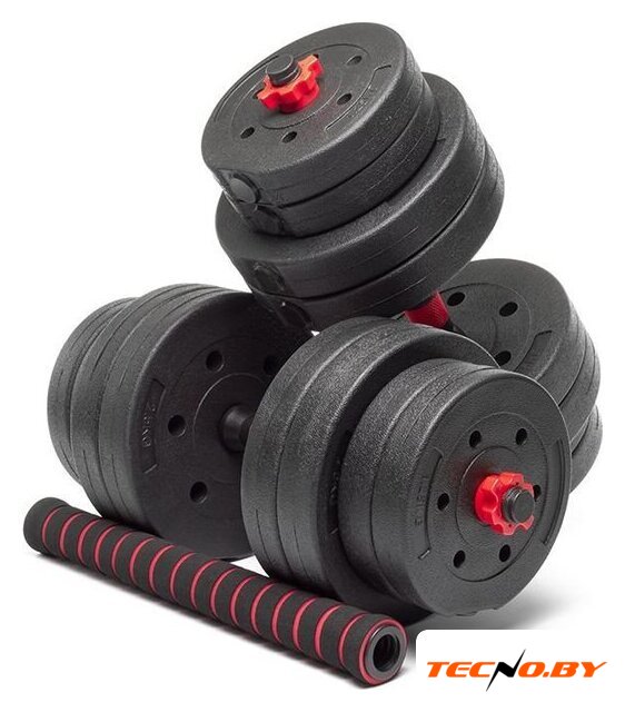 | Комплектация | - 2 гантельных грифа 47 см с гайками - диски 1,25 кг – 8 шт (диаметр диска: 18 см, толщина диска: 3 см);- диски 2,5 кг – 8 шт (диаметр диска: 21.5 см, толщина диска: 3.8 см); - соединительный гриф 40 см для превращения гантелей в штангу (прямой соединительный коннектор). |
