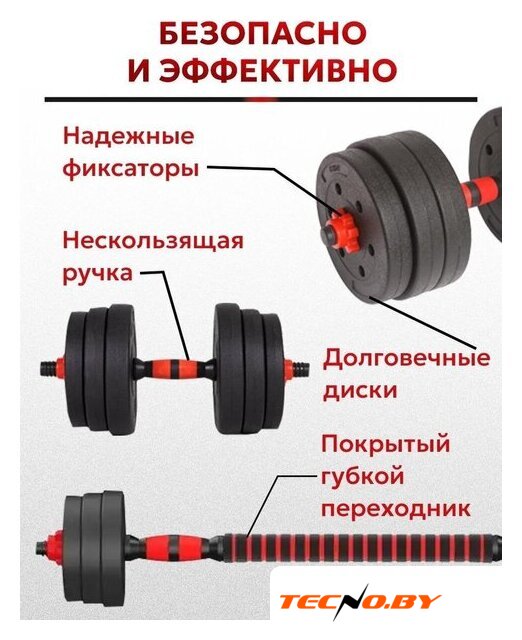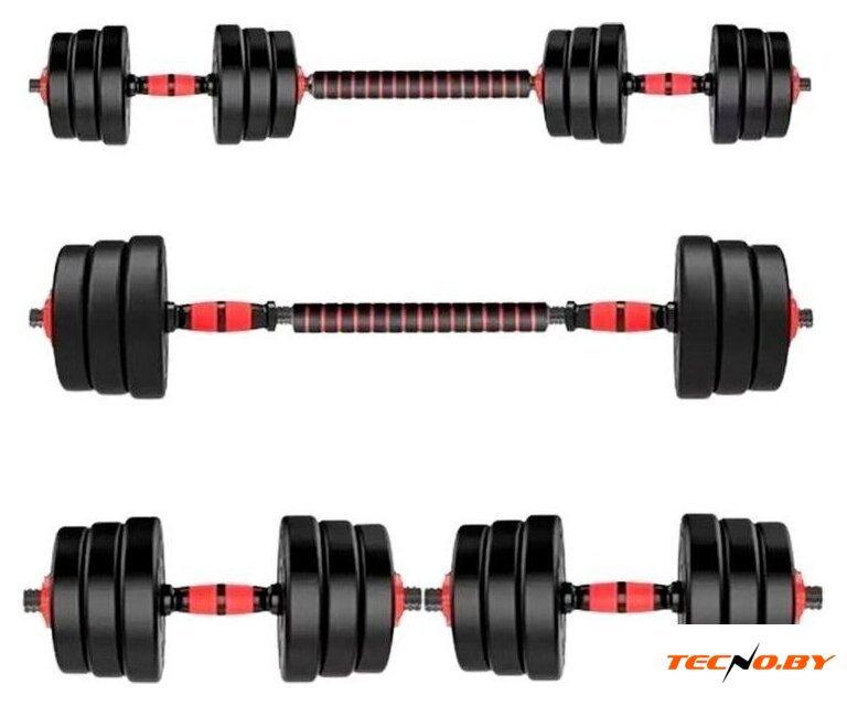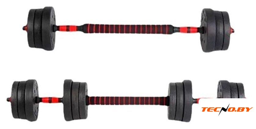 набор гантелей с соединительным грифом, вес снаряда 24 кг, конструкция: разборная