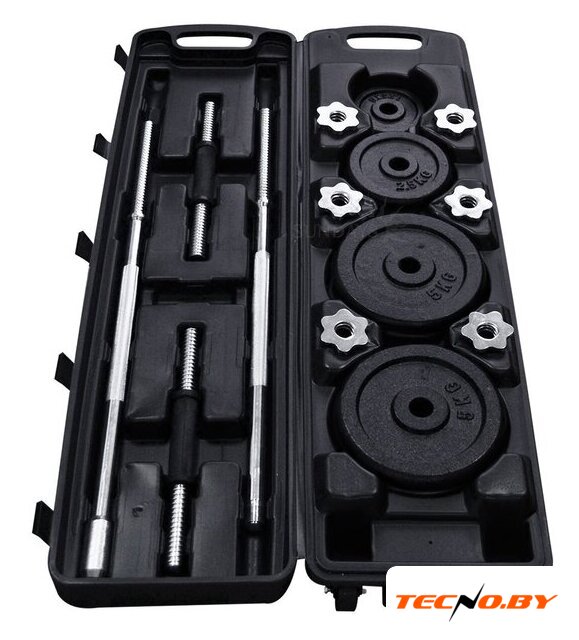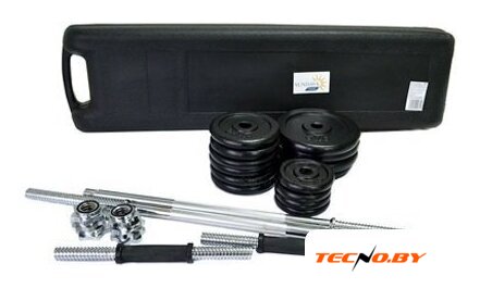 набор гантелей с грифом для штанги, вес снаряда 50 кг, конструкция: разборная, посадочный 25 мм, длина 150 см
