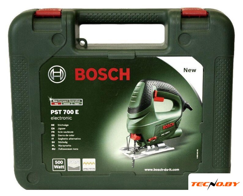 680 Вт, рукоятка-скоба, глубина пропила: 105 мм (дерево), 12 мм (сталь), 500–3100 ходов/мин, ход пилки: 23 мм, 2.2 кг, кейс