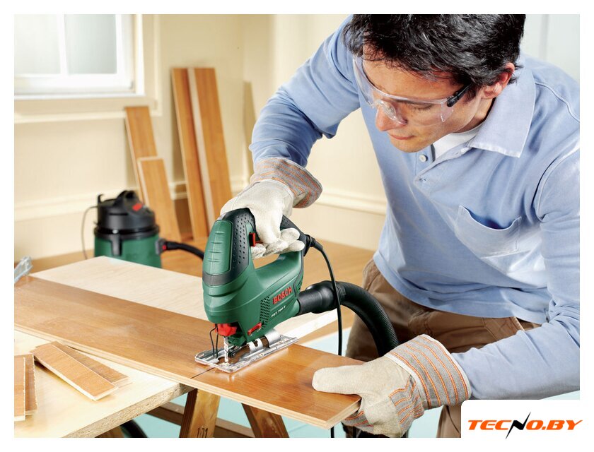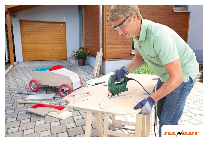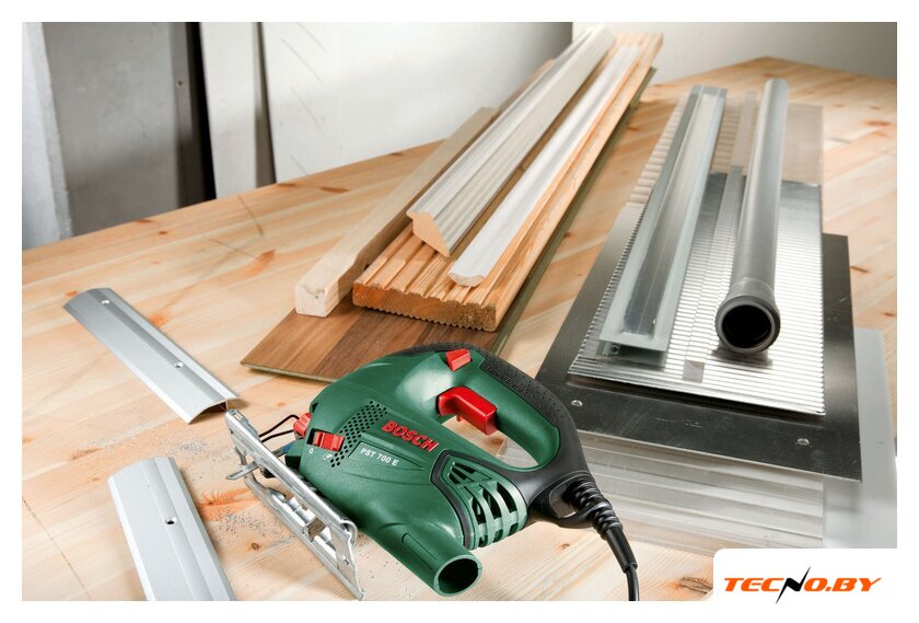 450 Вт, рукоятка-скоба, глубина пропила: 65 мм (дерево), 6 мм (сталь), 500–3100 ходов/мин, 1.8 кг