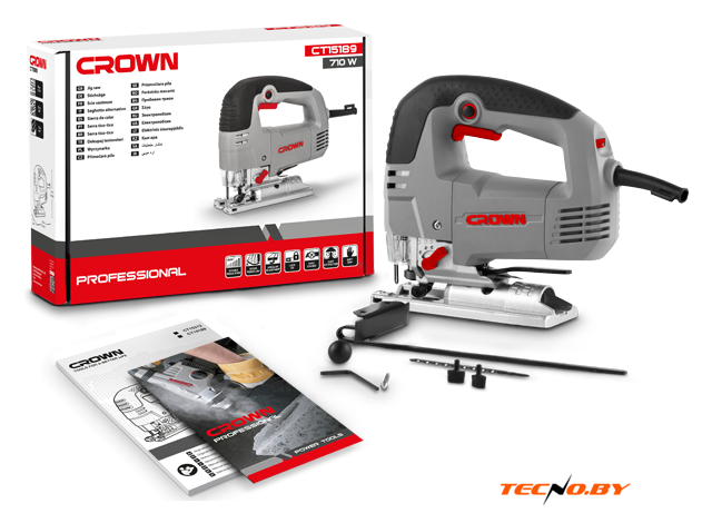 рукоятка-скоба, питание: сеть, глубина пропила: 65 мм (дерево), 6 мм (сталь), 800–3100 ходов/мин, ход пилки: 19 мм, 2.1 кг