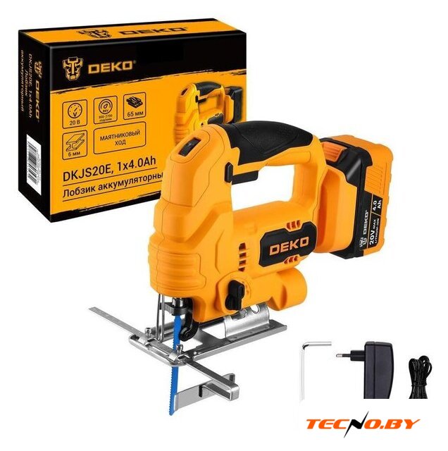 | Комплект поставки | - Лобзик – 1 шт.- Аккумулятор 2,0 Ач – 1 шт.- Зарядное устройство – 1 шт.- Пильное полотно – 1 шт.- Параллельный упор – 1 шт.- Шестигранный ключ – 1 шт.- Руководство по эксплуатации.- Коробка. |