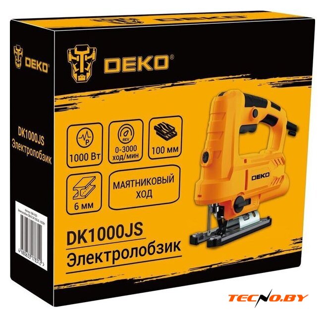 1000 Вт, рукоятка-скоба, глубина пропила: 100 мм (дерево), 8 мм (сталь), 800–3000 ходов/мин, 2.32 кг